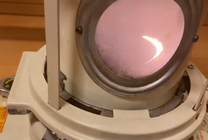 この窓は雲母(マイカ)と言う熱に強いものらしいですが、内側が曇っているのだろうと思って雑巾で拭いてみました。ある程度白っぽいのがとれるのですが、雲母の層が剥がれただけで、まだらに剥がれてしまいました。しかも、薄くなって耐熱的にどうなんだろうと思って、交換した方が良いかもとの結論に至りました。