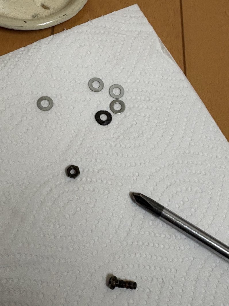 黒いのがかろうじて残った唯一のワッシャー。他の4つは家にあったので交換に使用したワッシャー
