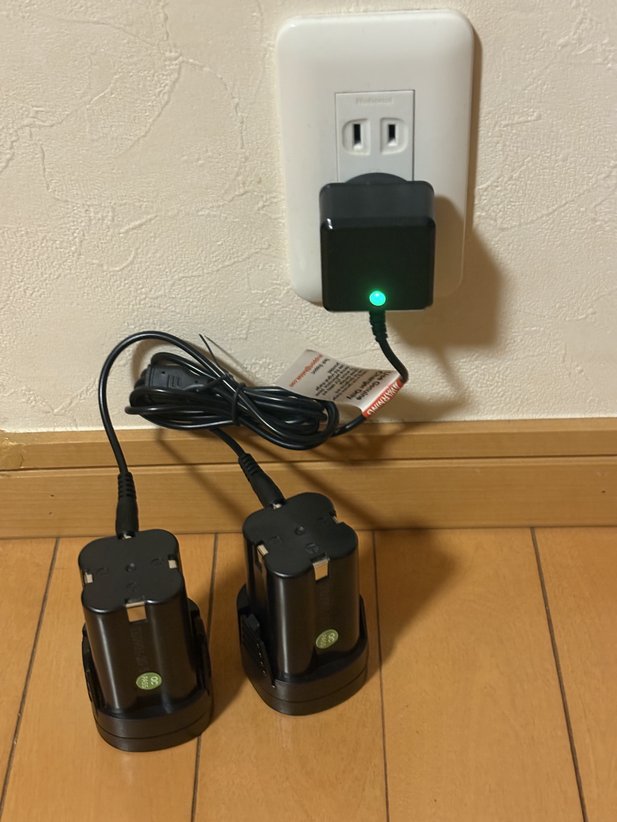 - コードレスの掃除機や、電動インパクトドライバーとかの充電器をイメージしていたので最初焦りましたが、バッテリー2本を同時に充電できる優れものでした。(写真参照)
