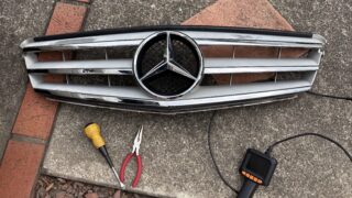 車の修理DIY メルセデス・ベンツ C200(アバンギャルド 2007年前期)フロントグリル塗装 DIY 経年劣化で色あせたフロントグリルを、自分の手でリフレッシュしました。取り外しに苦労したポイントや、銀メッキ部の分解、マスキング、重ね塗りの手順を写真付きで解説します。 2025.11.08 車の修理DIY
