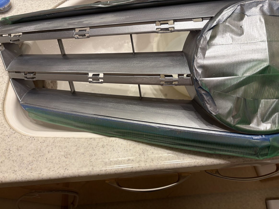 経年劣化で色あせたフロントグリルを、自分の手でリフレッシュしました。取り外しに苦労したポイントや、銀メッキ部の分解、マスキング、重ね塗りの手順を写真付きで解説します。